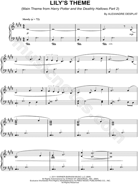 Скачать ноты для пианино хорошего качества и бесплатно "Lily's theme from Harry Potter and the deathly Hallows Part2 / Гарри Поттер и Дары смерти Часть 2".