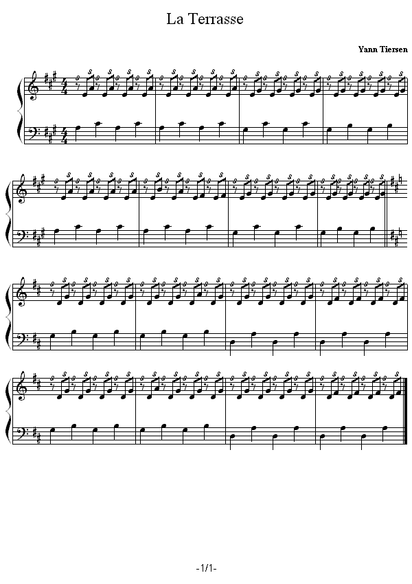 Скачать ноты для пианино хорошего качества и бесплатно "Yann Tiersen - La Terrasse". Размер: 16.6 Kb Формат: gif