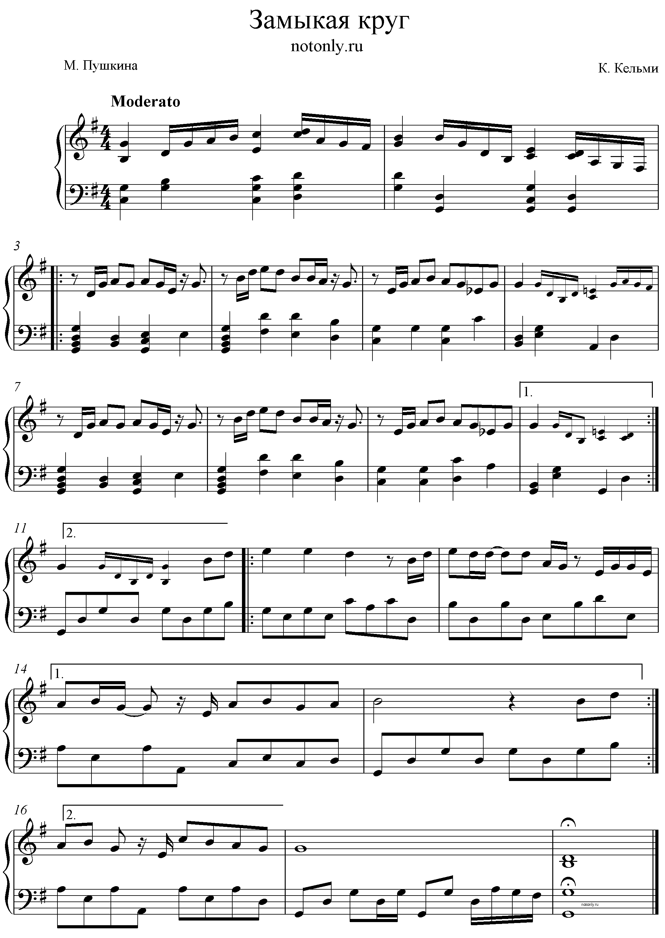 Скачать ноты для пианино хорошего качества и бесплатно "Замыкая круг".